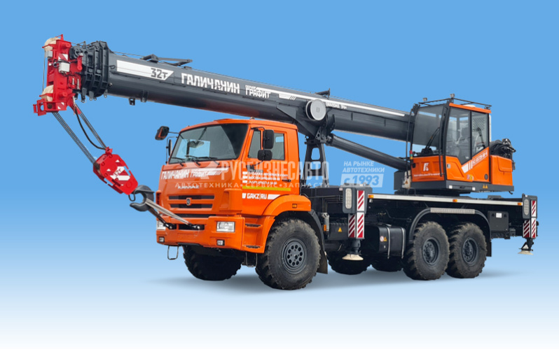 Грузоподъемность 32т опорный контур крана 5,85 х 6,3 профиль стрелы ОВАЛОИД шасси КАМАЗ-43118 стрела 34 м. в базовой комплектации противовес 1,5 т. + 1, т. (перевозится отдельно от крана) гарантия на кран 18 месяцев или 1000 м/ч