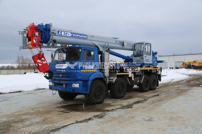 Груз-ть - 32 т; Модель шасси - КАМАЗ-63501; Колес.фор. - 8х8; Модель двиг. - КАМАЗ-740; Длина стрелы - 30,2 м; Длина гуська - 9 м. отдельно возимый от крана; М.противовеса - стационарный 1,9 т. + дополнительный 2,4 т.Сп.транс.противовеса - отдельно от крана; Срок гаран. - 18 месяцев или 1000 мото-часов;