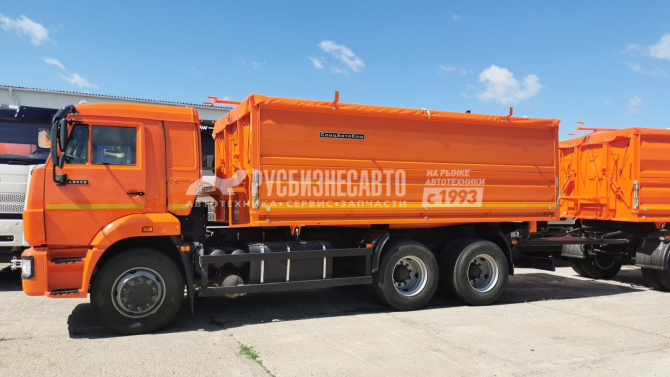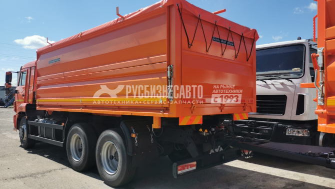 Самосвал с 2-х сторонней боковой разгрузкой и частичной назад, внутренние размеры платформы 5200*2420*1500мм, объем кузова 18,8 куб. метров, платформа изготовлена из низколегированной стали 09Г2С, передний борт жестко прикреплен к основанию, боковые борта состоят из 2х частей, навеска верхних боковых бортов верхняя, нижних боковых бортов - нижняя, нижние борта открываются на 120º, оборудованы механизмом для облегчения подъема. Задний борт имеет верхнюю навеску. Запоры бортов механические, открываются вручную. Борта уплотнены резиновым профилем. Тент+полог наматывающее устройство и площадка для обслуживания в комплекте.