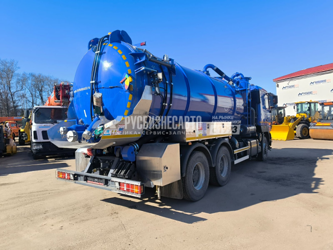 - Базовое шасси МАЗ 6312С9-8575-012 - Объем цистерны для ила/воды –  15 м3/1,5м3 - Материал изготовления цистерны- конструкционная сталь 09Г2С толщиной 6мм. - Откидной упор для фиксации цистерны в поднятом положении. - Уплотнительная прокладка между цистерной и задней крышкой маслобензостойкая. - Выгрузка цистерны осуществляется с помощью гидравлического цилиндра, расположенного в передней части цистерны (за кабиной шасси) либо с помощью создания в цистерне избыточного давления 0,5Bar, либо используя гидросмыв осадка. Гидавлический цилиндр оснащен гидрозамком для предотвращения случайного опускания под действием силы тяжести в случае отказа гидравлики. – Задняя крышка цистерны открывается с помощью 2 гидроцилиндров. Гидроцилиндры оснащены гидрозамками для предотвращения случайного опускания под действием силы тяжести в случае отказа гидравлики. - Вакуумный насос JUROP HELIX-550 производительность 3300 м3/ч - Насос высокого давления с гидравлическим приводом производства Италия, 70 л/мин 150 Бар.