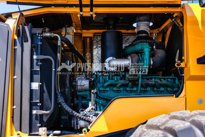- Двигатель Weichai WD10G220E23, 162 кВт, 2000 об/мин. Индикатор степени засорения воздушного фильтра. Односкоростная вискомуфта привода вентилятора с датчиком температуры. Воздушный префильтр в масляной ванне. - Опционально возможна установка ковша увеличенного объёма 4.5 м3. - Камера заднего вида - Усиленная планетарная гидромеханическая КПП LGCE TP190. - Усиленный передний мост LGCE AL36W, задний мост LGCE AL36W. - Тормозные механизмы в масляной ванне. Барабанный стояночный тормоз с электрогидравлическим управлением. Одна педаль управления тормозной системой Mico (США) с функцией отключения тяги (inch pedal). - Отбойники полурам с полиуретановыми вставками. - Гидравлический насос рабочего оборудования Permco. - Гидрораспределитель Parker (США) в зависимости от комплектации. - Рулевой механизм Eaton (США). - Шины LEADWAY (ширина протектора - посадочный диаметр, слойность) 23.5-25, 18PR - передняя ось, 18PR - задняя ось.