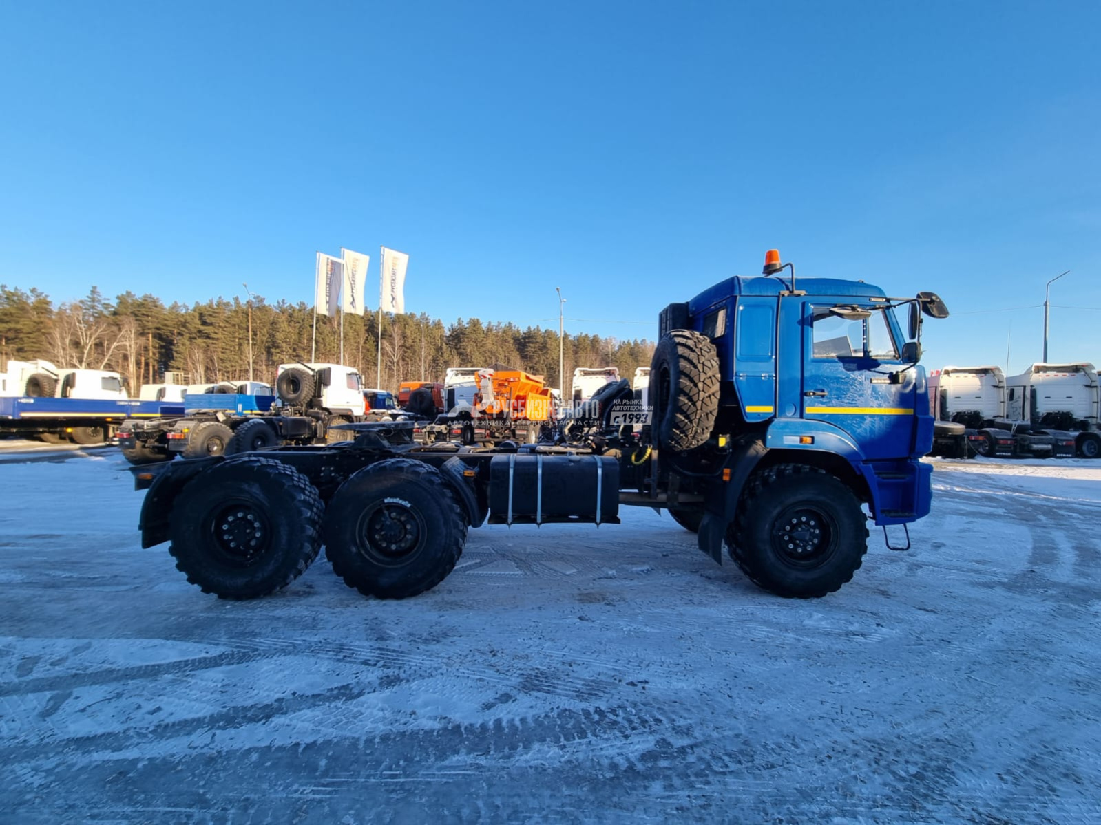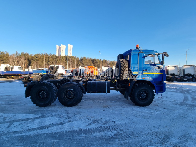 Колесная формула 6х6, ДВС КАМАЗ 667.511-300, шины 425/85R21, топл. баки 210+350 л, МКБ, МОБ, УВЭОС, Обогрев топливопроводов Звуковой зуммер заднего хода ,Отопитель кабины Планар-4Д, ПТС с отметкой FL, Экранирование электропроводки, Проблесковые маяки – 2 шт. Бронирование баков, Кармашек под информационную табличку, Кнопка массы IP-65, Искрогаситель с сертификатом и доработкой трубы выхлопа, Защита массы кожухом, Дренажная ловушка.