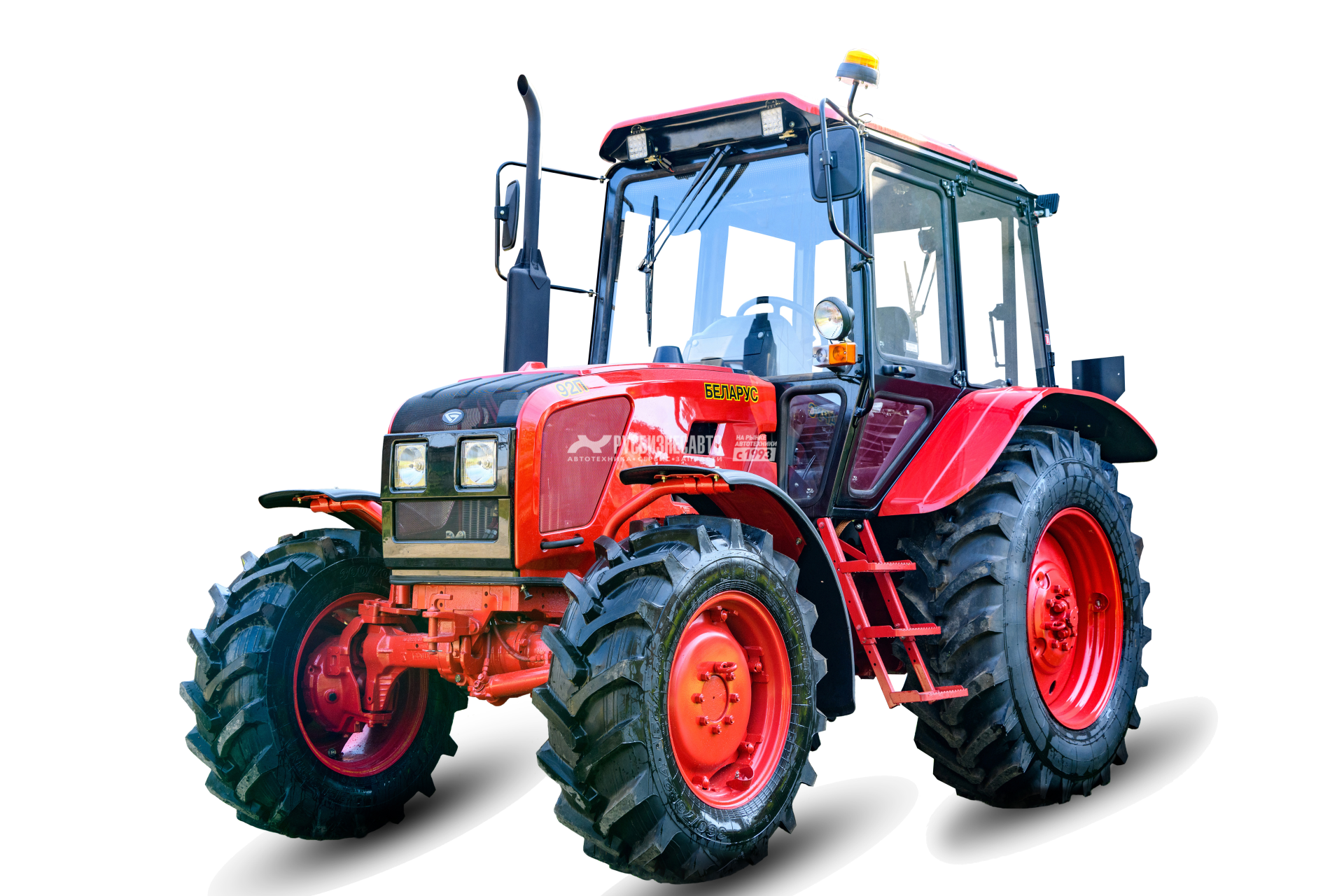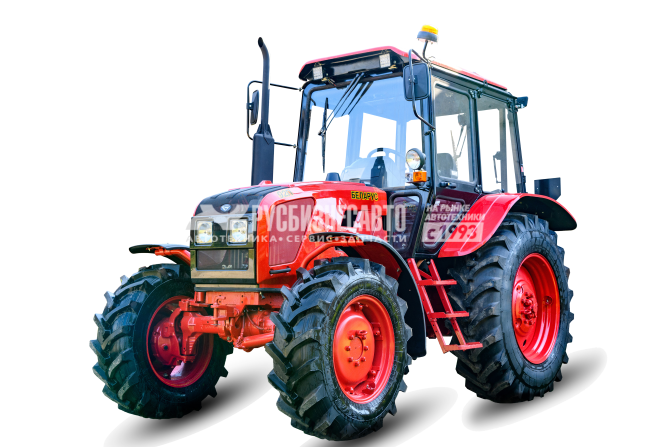 Для удобной работы с задним навесным оборудованием рабочее кресло водителя разворачивается на 180˚, а аккумуляторный отсек вынесен за пределы кабины. Капот и крылья машины выполнены из прочного пластика. Тяговый класс трактора Беларус 92П по ГОСТ 27021– 1,4