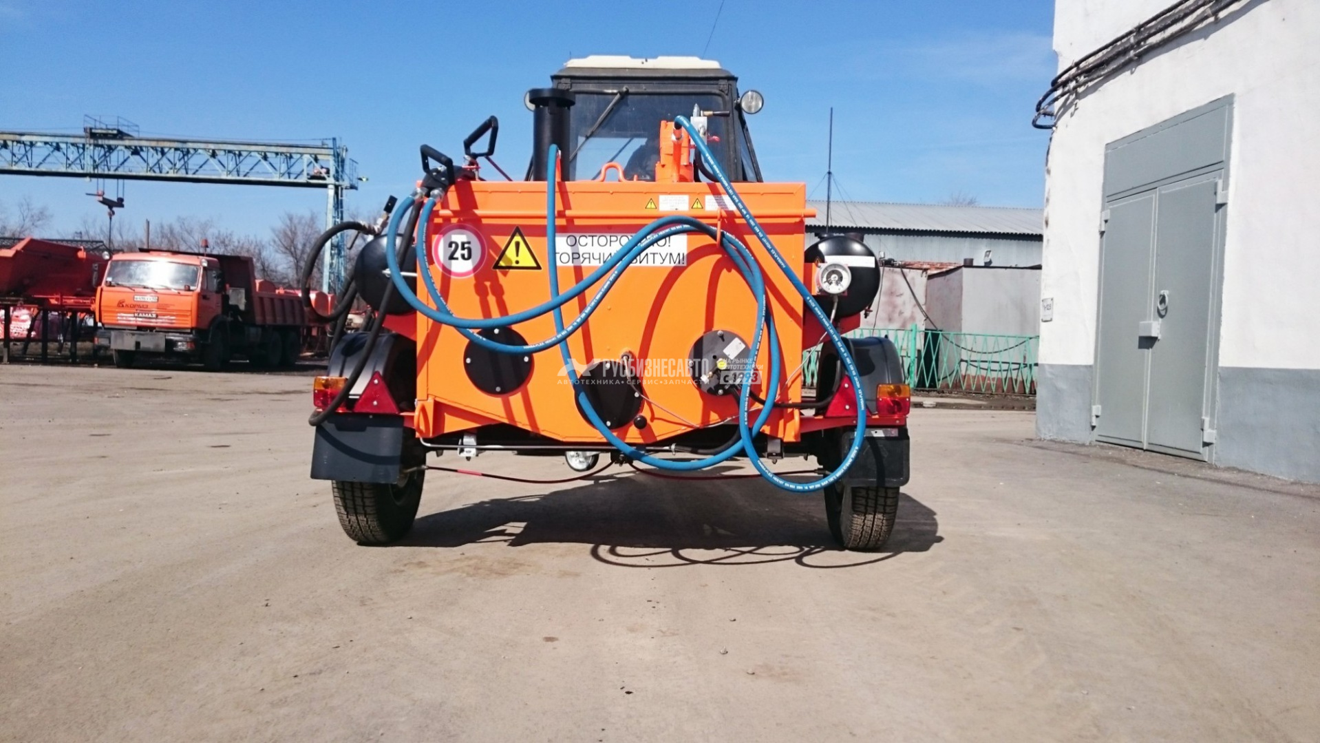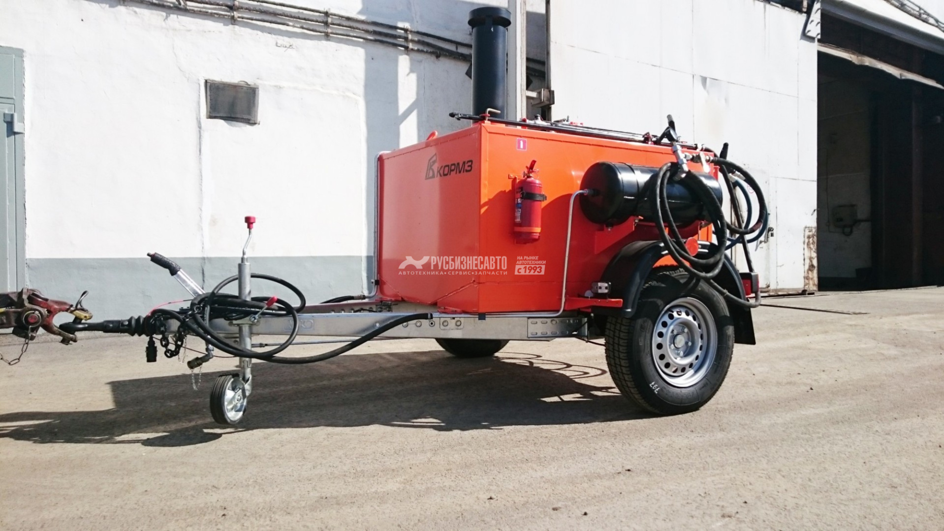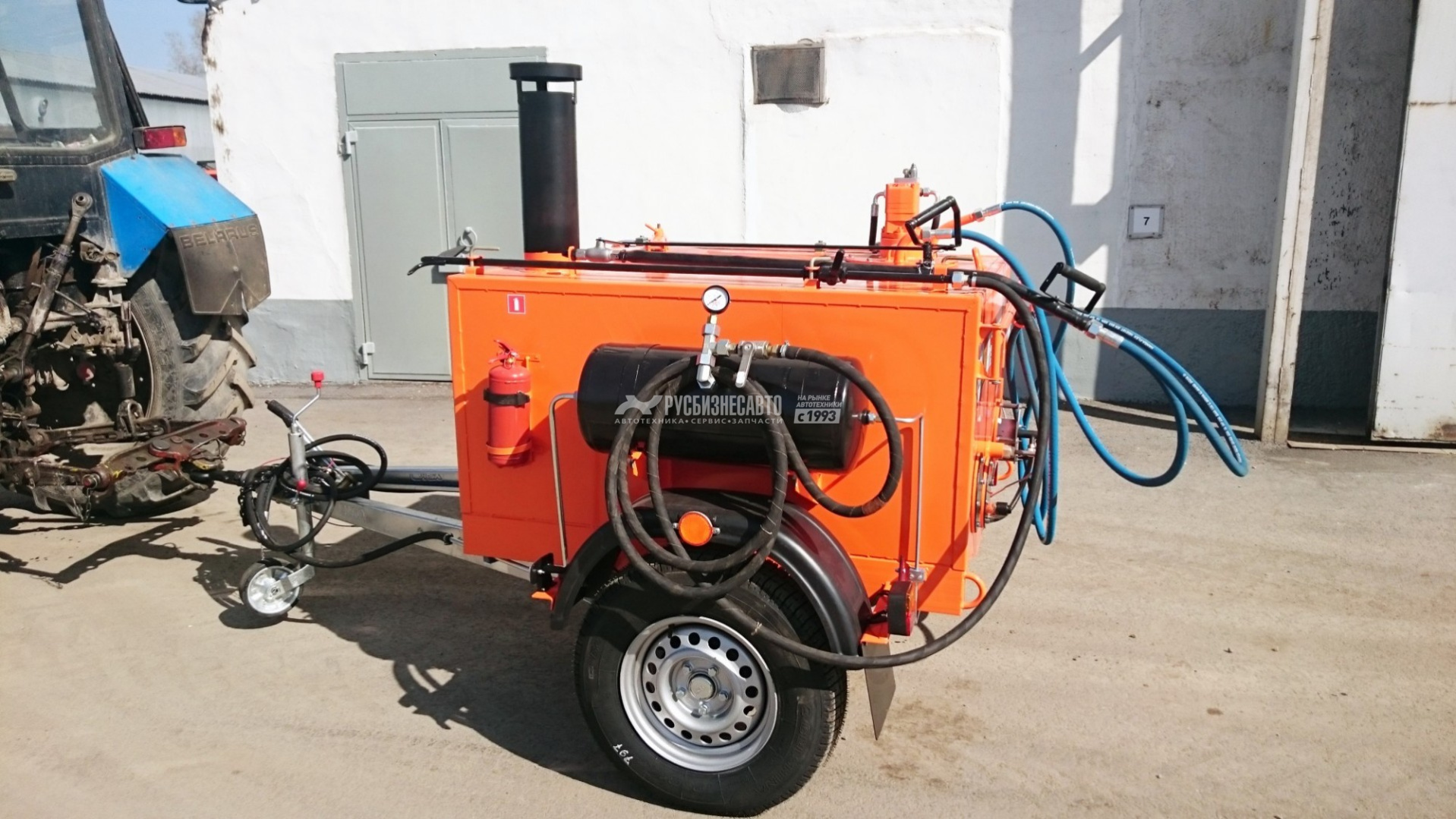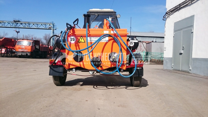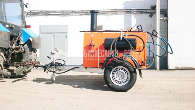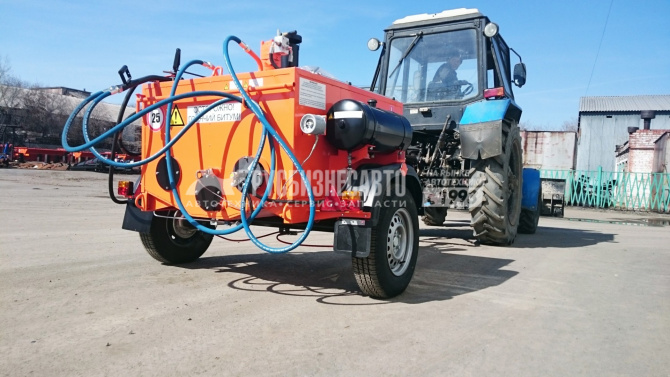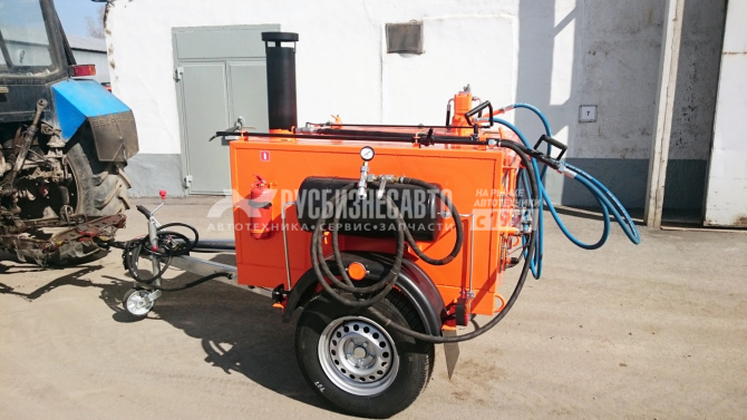 Битумозаливщик БЗ - высокопроизводительное оборудование для санации швов, трещин, а также производства мелкого ремонта асфальтобетонных покрытий, с возможностью подключения пневматического инструмента. Представляет собой тракторный одноосный прицеп с установленной на нем термоизолированной ёмкостью, которая заполняется расплавленным битумом.