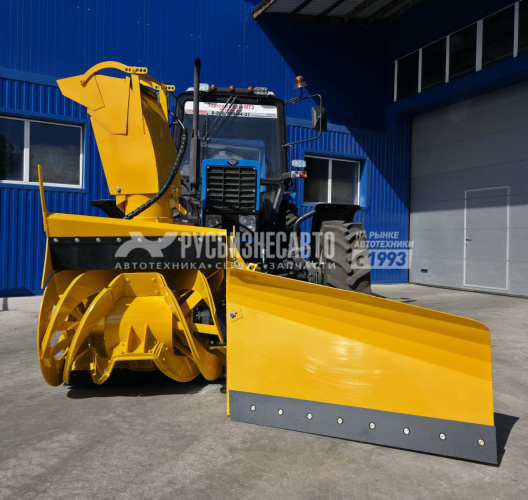 Навесное снегоуборочное оборудование для дорог, улиц и территорий. Шнек-ротор в сочетании с направляющим к нему снежную массу отвалом обеспечивает высокую эффективность даже в сложных погодных условиях. Дальность выброса до 25 м, патрубок поворачивается на 220°, а угол наклона регулируется гидроцилиндром. Шнек-ротор диаметром 700 мм убирает снежные валы до 1 м за один проход. Привод механический (BOM 1000 об/мин), управление гидравлическое. Оборудование не требует ходоуменьшителя и сохраняет функциональность задней навески трактора. – совместимость с навеской НУ-2 для BELARUS 80/82 – рабочая ширина захвата 2,1 м – толщина лопаты отвала 4 мм – производительность 500 тонн/час – рабочая скорость движения до 7 км/ч – габариты (Д×Ш×В) 1600×2100×2030 мм – масса 580±20 кг – дальность отброса до 25 м – диаметр фрезы ротора 700 мм – максимальная высота убираемого слоя 1,0 м – угол разворота поворотного узла 220 градусов – частота вращения ВОМ трактора 1000 об/мин – частота вращения фрезы ротора 540 об/мин