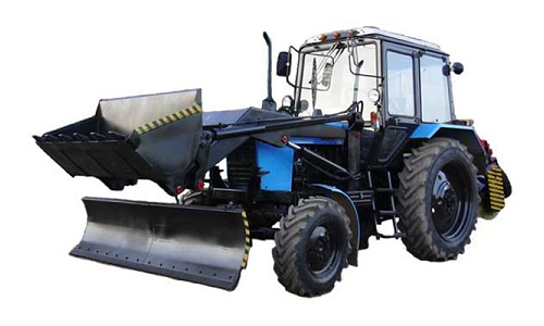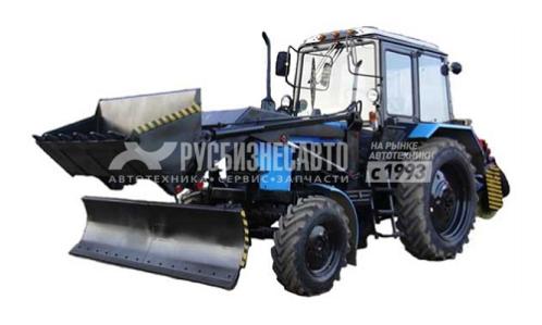Коммунально-погрузочная машина на тракторе "Беларус-82.1" с проблесковым маяком. В комплекте щетка, погрузчик, ковш 0,8м3, сменный отвал.